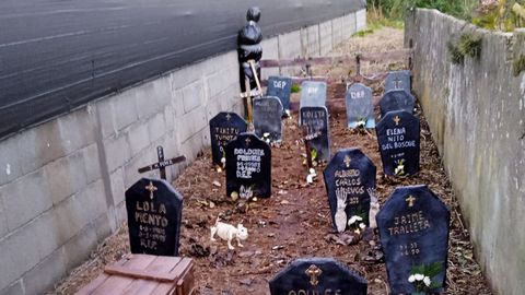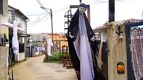 Como cuenta Xoana Ramonde, la «culpa» la tiene su vecino Manolo. «Es un manitas y se le ocurrió hacer una guillotina un día, otro día hizo una cama, una silla eléctrica, y empezaron a sumarse otros colaboradores. Él y María, su vecina de al lado, empezaron a rellenar pantalones viejos para hacer maniquíes», cuenta. Al principio solo adornaron una esquina de la calle para ambientar el Samaín. Ahora es toda la calle, las puertas, los galpones, hasta hay un cementerio en una huerta. El primer año fue un éxito y poco a poco se fue corriendo la voz a través de las redes sociales de lo impactante del pasaje del terror que se monta allí. «A nosotros también nos empezó a tentar, y me fui al chino, arramblé todo lo que había y decoré nuestra casa, y mi cuñada, que vive arriba, lo mismo. Y así toda la zona. A lo tonto se nos fue desmadrando y ahora es ya una tradición. El barrio da miedo solo un día, pero el resto del tiempo nos llevamos caralludamente», afirma. «Empezamos dando caramelitos, pero un día dijo mi marido que en vez de eso, iba a salir con la máscara de Jason y la motosierra. Triunfó. Los niños salían despavoridos», relata sobre su pareja, al que define como «un bendito incapaz de matar una mosca, por eso me hace más gracia», comenta.