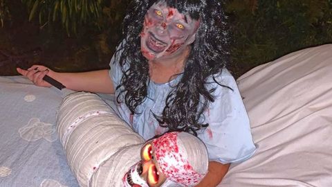 Este año, las previsiones del tiempo no son muy prometedoras, y de ello depende que este viernes a partir de las 19.00 horas se pasee por allí Jason con la motosierra, la niña del exorcista (su cuñada, que va con la cama hecha con un carrito del súper recorriéndose todo el camino hasta el Burger King), Freddy Kruger y otros personajes que habitan las pesadillas de mucha gente. «En el 2022 nos pasó algo parecido, pensamos que íbamos a tener que cancelarlo, pero al final por la mañana, el pronóstico de Meteo Galicia cambió, decían que abría durante unas horas, lo montamos todo a la carrera y lo hicimos y salió todo genial», recuerda.