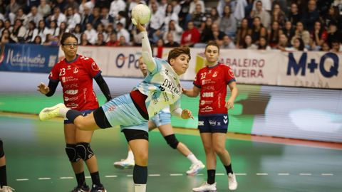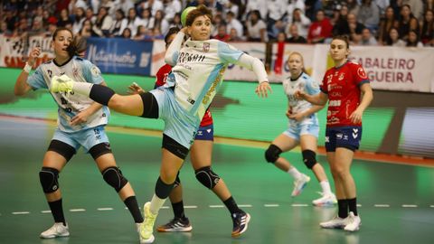 Esta ese momento, el derbi gallego transcurría por los cauces de la igualdad. Mandaba el Guardés, amparado en el acierto de Lorena Téllez, que acabó con ocho goles, y sobre todo, por el recital de paradas de su guardameta. Aun así, en el tramo inicial, y atacando casi siempre con siete jugadoras vaciando portería, el equipo local mantenía igualada la contienda e incluso se puso una vez por delante (7-6).