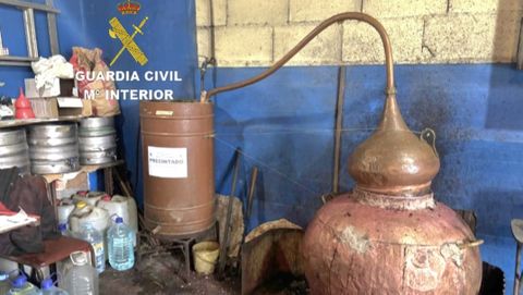 Los agentes se encontraron los tres alambiques y un total de 112 envases de distinta capacidad con los más de tres mil litros de bebidas. El dueño era un varón de 66 años, vecino de Ponteareas, al que se le instruyeron diversas actas por infracciones a la Ley de represión del contrabando y a la ley de impuestos especiales.