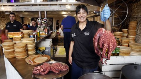 El pulpo sigue teniendo un tirón tremendo entre los turistas, y abrir la zona de trabajo al público ha sido un acierto: «Si cobrase un euro por cada foto que le hacen a la pulpeira ya no me hacía falta vender el pulpo», afirma con humor García.