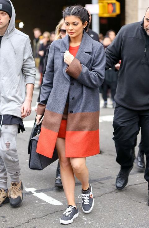 3. Como una Kardashian más. ¿Letizia y Kylie Jenner con el mismo estilismo? Pues ya ves que sí. Las dos llevaron el mismo conjunto tricolor de abrigo y falda con jersey naranja de Hugo Boss (la reina antes), aunque eso sí, Jenner se lo puso con trenzas boxeadoras, zapatillas deportivas y la falda más corta.