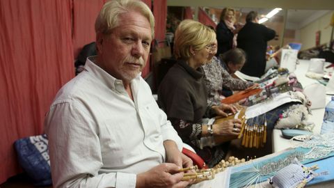 En esa proporción estadística se está moviendo este ferrolano que empezó a dedicarse a los bolillos hace dos años, cuando por curiosidad se acercó a la Asociación de Mujeres Amistad, y allí dos palilleiras, Cherola Seoane y Luisa Rodríguez, lo convencieron para que probase. Y se enganchó. «Aunque es complicadísimo y me siguen asombrando las maravillas que hacen algunas mujeres, creo que engancha, es una afición en la que vas viendo el resultado, así que te dan ganas de seguir», explica Ángel, que ahora no deja de hacer encargos para la familia, para sus amigas y por supuesto para su nieta: «Tiene 4 años; ahora estoy intentando acabarle unos detalles para sus vestidos».