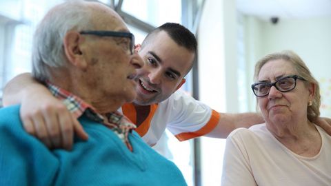 A sus 26 años, Pablo Mosquera se pasa el día con personas mayores. Su trabajo como cuidador en el centro de día Mayores Atención a la Dependencia de A Coruña no es casual ni fruto del descarte. Lo suyo es vocacional. Estudió Atención Sociosanitaria y lleva ya cinco años dedicándose a esto. Sus ganas le vienen de la infancia. «Yo soy de A Coruña, pero en mi aldea, que es Palas de Rei, siempre me entendí muy bien con la gente mayor, y noto que ellos conmigo también. Me gusta hablar con ellos y que me cuenten sus historias», afirma Pablo, que asegura que el requisito indispensable para ser un buen cuidador es la paciencia y «entender a cada uno en su personalidad. Tienes que conocerlos, darles confianza y cuando la cogen ya va todo rodado».