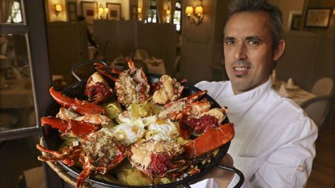 Casa Román, en Pontevedra, es otro de esos restaurantes de referencia en cuestión de marisco y pescados. La saga familiar continúa de la mano de Román Vidal que ha mantenido la misma esencia que su padre y que su abuelo. La calidad y el servicio al cliente ante todo. Y lo de mezclar bogavante con huevos fritos no fue una propuesta del propio Vidal, sino de un comensal ilustre que hace un par de años llegó a su restaurante. «Una amiga y clienta nos dijo que iba a venir a comer con Carlos Herrera. Me comentó que a él le gustaba mucho el bogavante frito, con huevos y con patatas. Le dije que no lo teníamos en carta, pero que se lo hacíamos. Se lo hicimos y le encantó. Incluso lo publicó en sus redes y a partir de ahí mucha gente nos decía que querían probar el plato que había comido aquí Carlos Herrera. Empezamos a hacerlo y al ver que a la gente le encantaba, lo pusimos en carta. Es un plato que está saliendo muchísimo», comenta este experto hostelero.