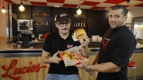 Es lo penúltimo de la burbuja hamburguesera. Se trata de una burger de cocido que incorpora ingredientes del plato estrella del otoño-invierno gallego. La idea, la ejecución y el resultado final es obra de un carnicero y un hostelero que tienen sus respectivos negocios a apenas unos 20 metros uno de otro. Están, en concreto, en Os Campóns, Cambre, en el área metropolitana de A Coruña. «La idea es mía», afirma Pablo Iglesias, que desde hace 14 años está al frente de la carnicería Ana. Es una tienda de barrio que destaca por su apuesta por las carnes de calidad y ahora también con inventos como el que hoy presentan. «Lleva un 70 % de carne de vaca y la completo con lacón y panceta curada y chorizo. Lo pico todo junto y el resultado es muy interesante y una manera de tributar un homenaje al cocido», informa. Lo primero que hizo fue comunicárselo a su vecino-empresario-amigo que abrió en abril del 2024 Lucio's Burger Shop y que ya cuenta con una clientela fiel. Se llama Aldán, como la parroquia y la ría del mismo nombre de Cangas, y se apellida García Pérez. Dice que le encantó a su madre y así lo bautizaron. «Cuando Pablo me trajo la hamburguesa y la probé, de repente me vino al paladar el sabor de casa, del cocido de siempre», destaca. Entonces se puso a pensar qué podía hacer con ese trozo de carne y de qué productos acompañarlo. No era un reto fácil montar una buena hamburguesa de cocido.