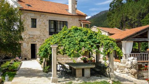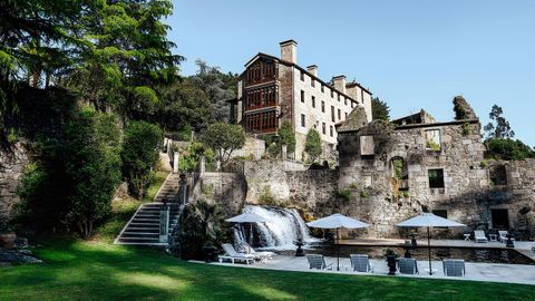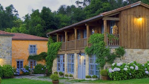 Sobre la imponente arquitectura pétrea y las instalaciones de una antigua fábrica de papel del siglo XVIII, rodeada de 10.000 metros cuadrados de exuberante naturaleza, se levanta una de las casas de turismo rural mejor valoradas de Galicia, como acredita su puntuación de 9,7 en Booking y el certificado de excelencia de Tripadvisor. Aquí y allá asoman coquetos jardines, merenderos y senderos, en los que la tranquilidad solo se ve alterada por el ruido del agua que discurre por la finca y que cae en la piscina desde una cascada natural. La casa cuenta con 14 habitaciones con vistas al río Umia y un amplio salón con chimenea.