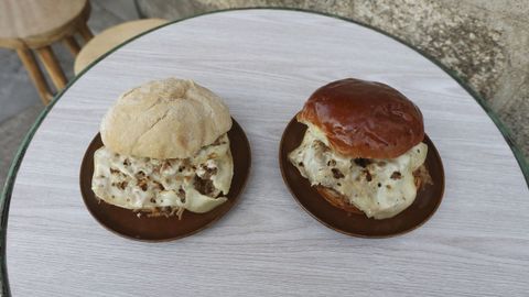 Arredemo —chicharrones, pepinillo agridulce y chipotle picante— y Unha Porcallada —brioche con chocolate, crema de manises, banana y frambuesa—.