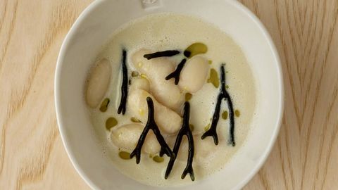 Los sabores de la infancia los expresa sin formalidades, como en esta elaboración que es una interpretación contemporánea de un clásico de cuchara, centrado en la materia prima y en un equilibrio entre la tradición y la técnica. Con este giro, el cocinero busca una cocina creativa, pero menos elitista.