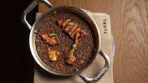 En plena temporada otoñal, el chef Rafa Zafra rinde homenaje a la cocina de terruño y al producto de cercanía con un guiso de lentejas con pichón de sangre y «foie», que aúna tradición y sofisticación. En Rural, las humildes lentejas se elevan al máximo nivel al abrazar la intensidad del pichón de sangre y la untuosidad del «foie».