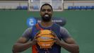 Se cuelga del aro y obliga a Javi Rodríguez a parar el partido.