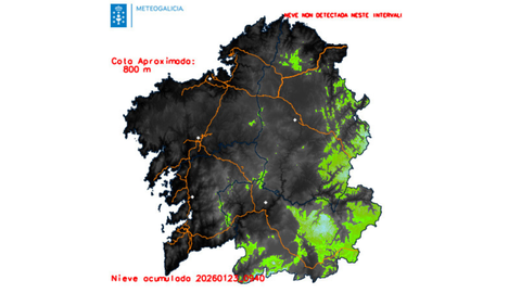 El mapa de Meteogalicia muestra de forma actualizada en qué zonas está nevando en estos momentos. Las áreas más afectadas, la zona más oriental de Lugo y Ourense.