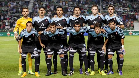 Celta: Sergio, Hugo Mallo, Cabral, Fontàs, Jonny; Radoja, Augusto, Krohn-Dehli; Orellana, Nolito y Charles.