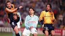 La zaga gala despeja balpnes como puede. Un nuevo disparo de Aspas lo atrapa sin problemas Diouf.