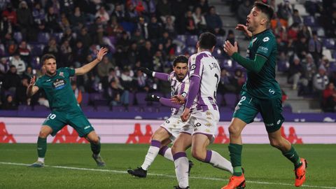 Remate defectuoso del punta del Valladolid que no encuentra portería.
