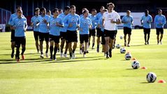 El que sí se ejercitó con normalidad con el resto de la plantilla fue Quique De Lucas. El centrocampista arrastraba molestias en días pasados, pero ya parece recuperado