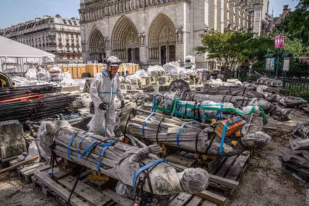El primer objetivo de las obras era vaciar el interior. La pérdida de estabilidad estructural –tanto por el fuego como por el agua de los bomberos– ha obligado a retirar estatuas, quimeras y balaustradas y a evaluar la salud de las célebres gárgolas. «Cuando se desmantele el andamio, podremos dar por salvada la catedral», decía monseñor Chauvet, rector de Notre Dame.