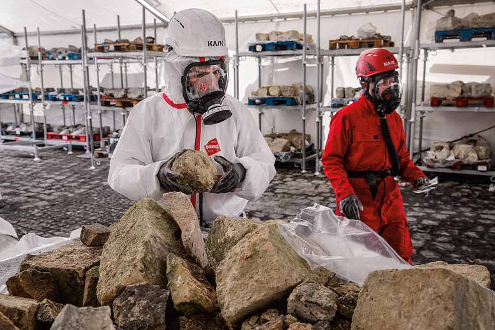 Los fragmentos se ‘evacuaron’ en cestas colgadas de la grúa. Muchos artistas se interesaron por ellos, pero todos fueron a una planta de descontaminación antes de ser destruidos. ‘Las ardillas’ llevan en Notre Dame desde el principio. Extendieron redes de seguridad en frontones y rosetas para evitar que caiga nada a la calle, consolidaron la estructura, sacaron el agua y reemplazaron 1500 metros cuadrados de techos con una lona en tres días; además de hacer estudios fotográficos de las bóvedas y mediciones de resistencia mecánica de la piedra. Este, sin embargo, fue su mayor desafío.