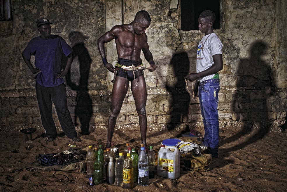 La lucha no se entiende sin los rituales místicos, que se practican desde su origen, cuando celebraban el final de la temporada de lluvias. Usan ... pociones mágicas, amuletos, sonidos hipnóticos de tambores, danzas rituales... Se considera que, antes del combate, los ungüentos aplicados en la piel fortalecen al luchador y los cánticos atemorizan al rival.