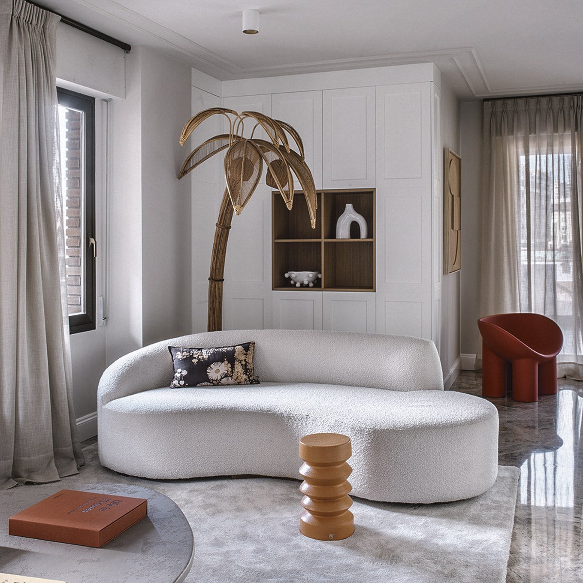 La interiorista Patrizia Lizalde propone formas redondeadas y orgánicas tanto en mobiliario como en paredes y muros. Los encuentros entre dos planos verticales, antes en esquina, ahora opta por hacerlos redondeados porque le dan un carácter más calmado y suave al espacio. Por supuesto, también las aperturas de transición entre dos espacios se suavizan haciendo vanos curvos en forma de arco en vez de pasos rectos. ¿El resultado? Según un estudio de la Universidad Estatal de Oregón (Estados Unidos), pura felicidad, estimulación y relajación.