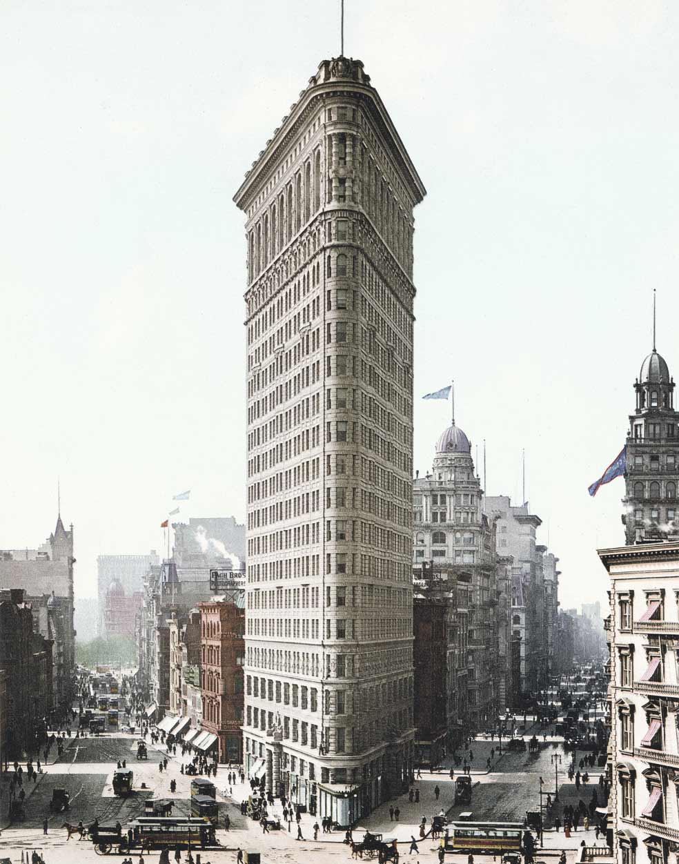 El Flatiron, uno de los rascacielos más emblemáticos de Nueva York –y uno de los primeros–, ‘brotó’ en 1902 en plena Quinta Avenida. Al ver su forma triangular y sus 87 metros de alto, los neoyorquinos pronto empezaron a apostar lo que tardaría el viento en echarlo abajo. Las postales del edificio extendieron su popularidad por todo EE.UU.