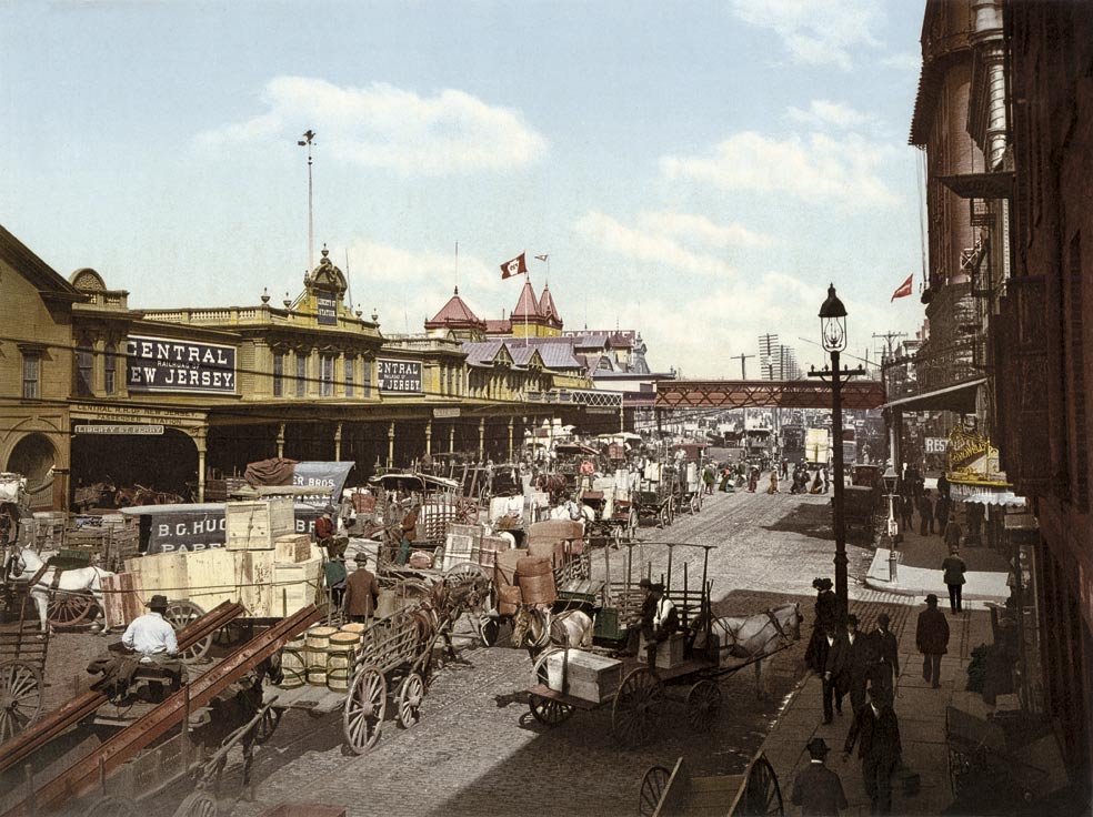 Paralela al río Hudson, West Street era, a finales del siglo XIX, una de las principales arterias de Manhattan. La Detroit Photographic Company creaba postales como esta con la nueva técnica del fotocromo a partir de negativos en blanco y negro que se pasaban a varias piedras litográficas, una por cada color deseado.