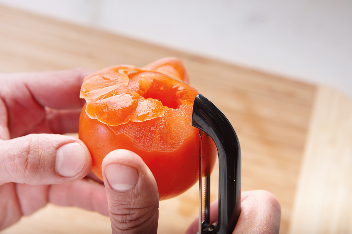 Para empezar con la receta de rodaballo con limón, tomate y alcaparras, se pela el tomate, se le retira la pulpa y se corta la carne en dados pequeños de unos cinco milímetros.