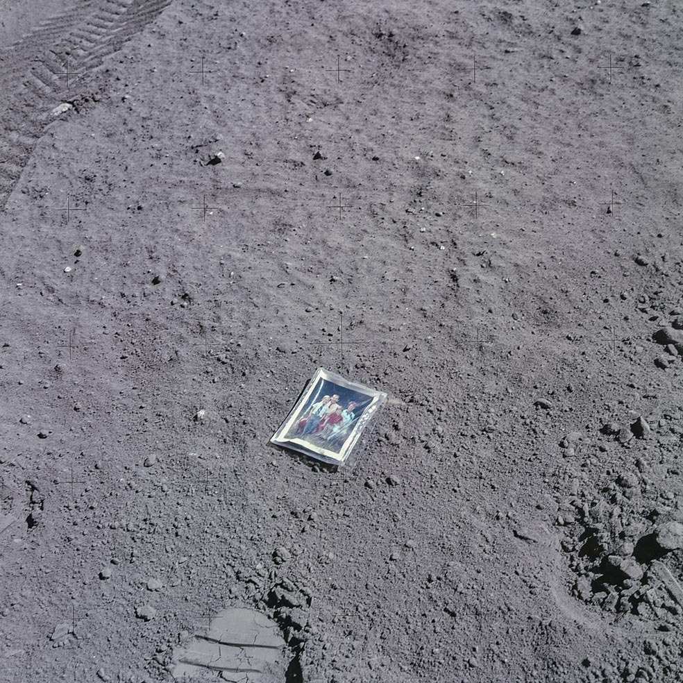 Charlie Duke, astronauta del Apolo 16 –quinta misión exitosa a la Luna– dejó en la superficie este retrato de familia. La imagen habrá desaparecido por la radiación solar, pero la NASA guarda en su archivo la que el propio Duke tomó aquel día.