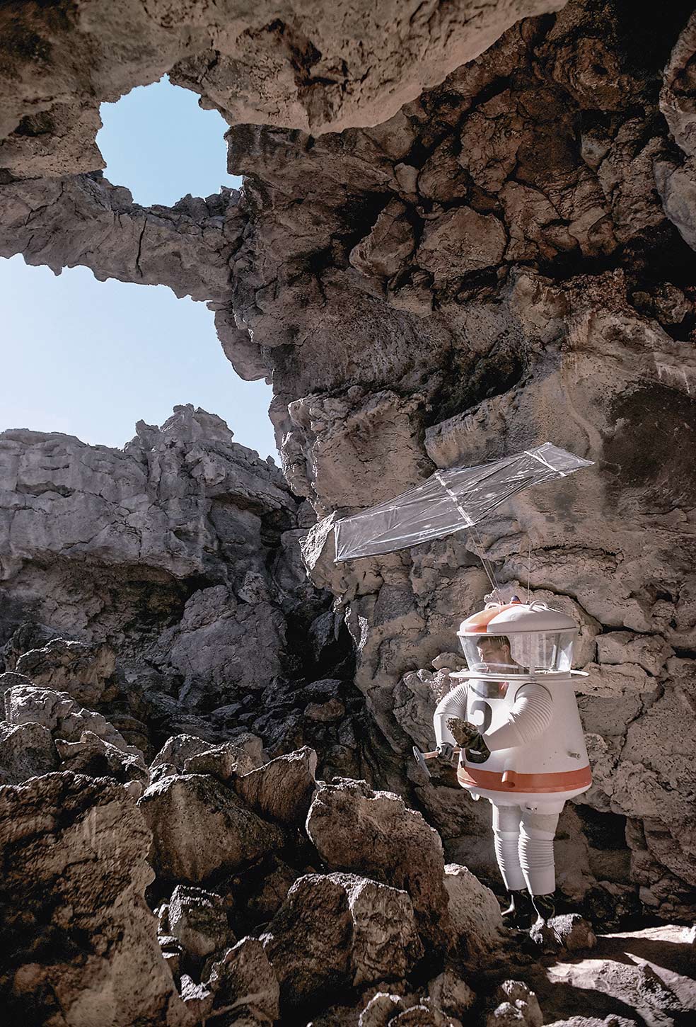 El traje Grumman, de 1962, fue uno de los primeros diseños para explorar la superficie lunar. Contaba con un sistema para ayudar al astronauta a levantarse ante una caída, baterías y un tubo de aire conectado al módulo de aterrizaje.