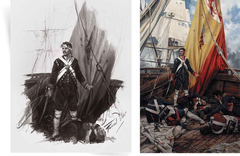 En la batalla del Cabo de San Vicente, en 1797, al granadero extremeño Martín Álvarez le ordenaron defender la bandera de su navío. Se quedó solo, pero no se rindió. Mató a varios ingleses antes de caer. Lo dieron por muerto, pero no lo estaba. «Los ingleses lo curaron y lo mandaron a casa —dice Ferrer-Dalmau—. Lo consideraron un héroe». Murió cuatro años después, de una infección.