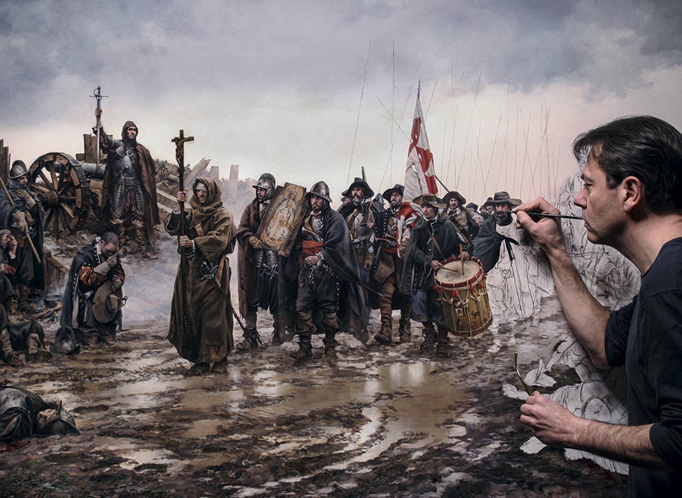 En sus cuadros recrea con una precisión increíble momentos cruciales de la Historia militar española. Cada detalle, coraza, daga o sombrero está documentado. El 'pintor de batallas' nos explica cómo es su proceso creativo.