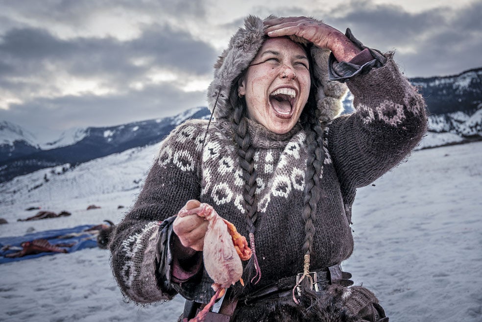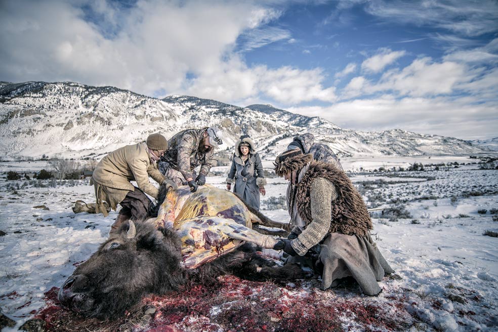 Los carniceros del grupo Buffalo Bridge desuellan y destripan a los bisontes recién abatidos. Ellos se quedan con los huesos, las entrañas y la piel. Conocen la forma de sacar partido a prácticamente todos los huesos y órganos de estos animales. Se trata de una sabiduría tradicional que los propios cazadores indios han olvidado.